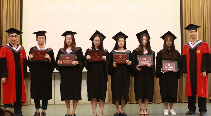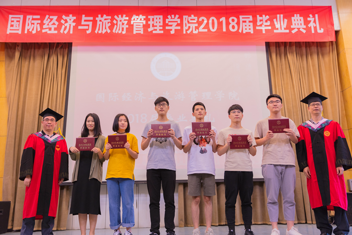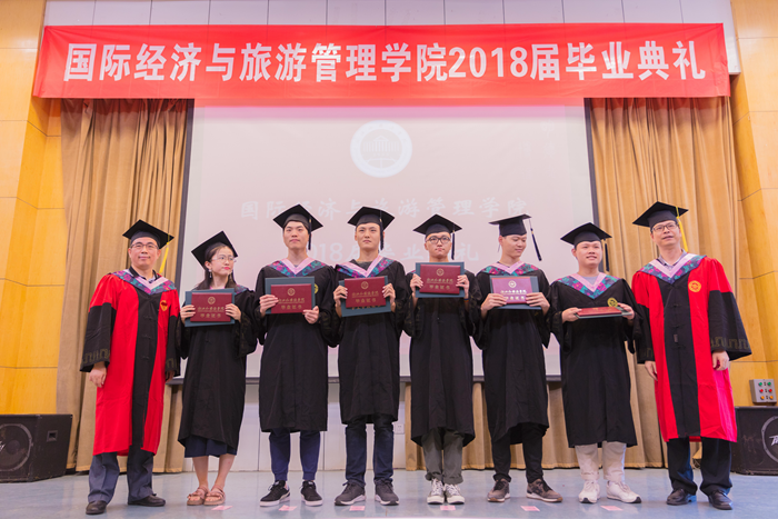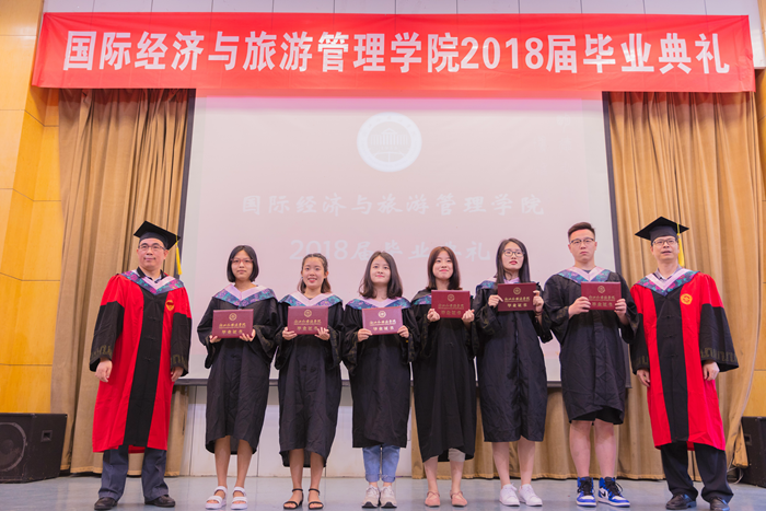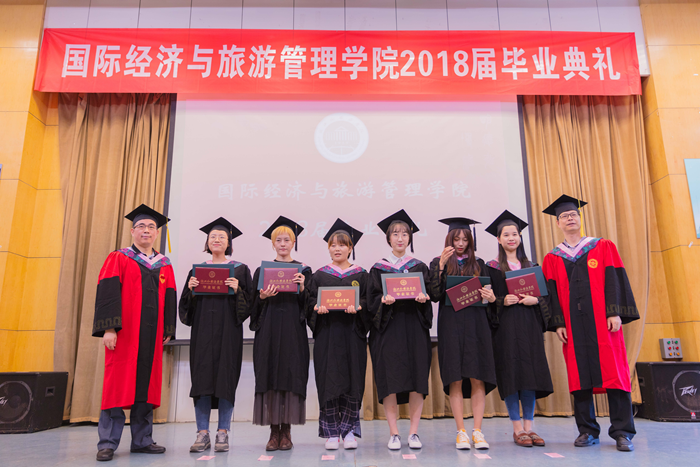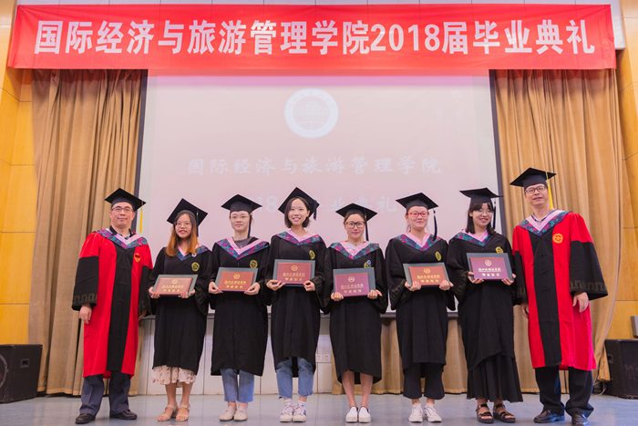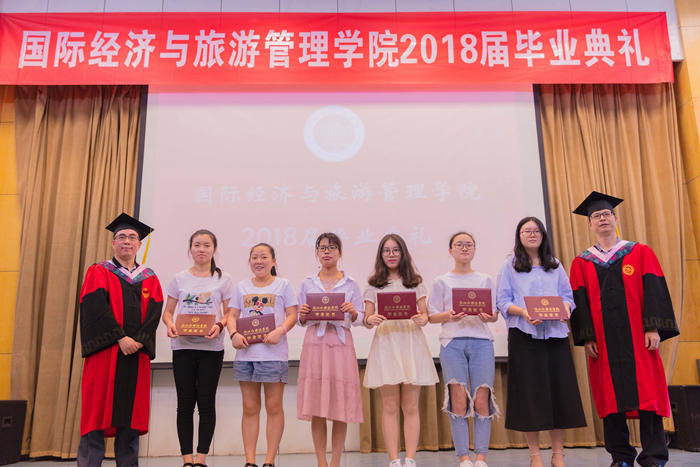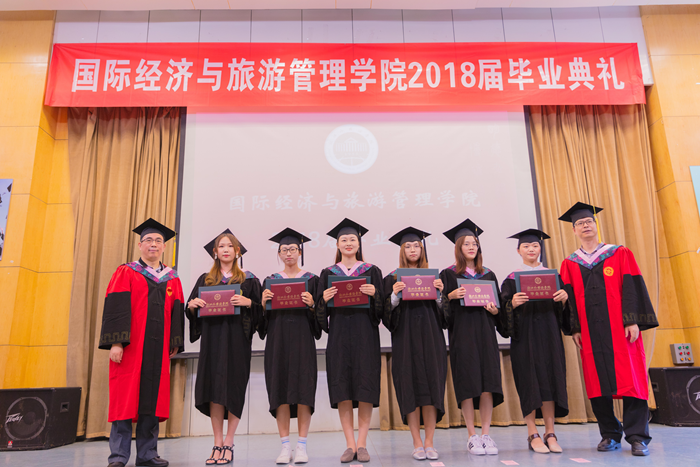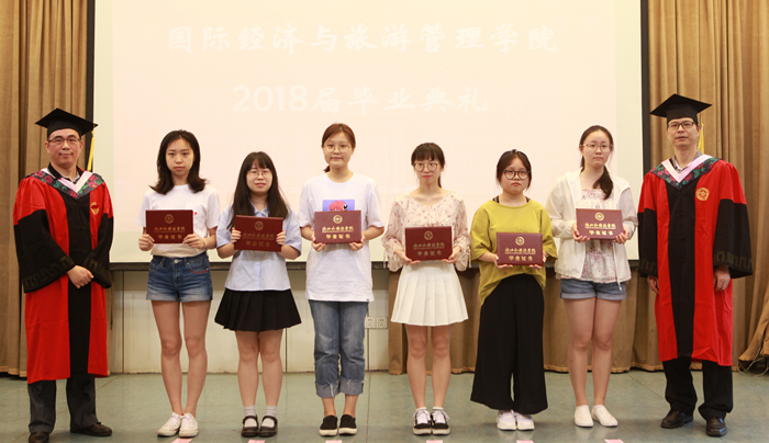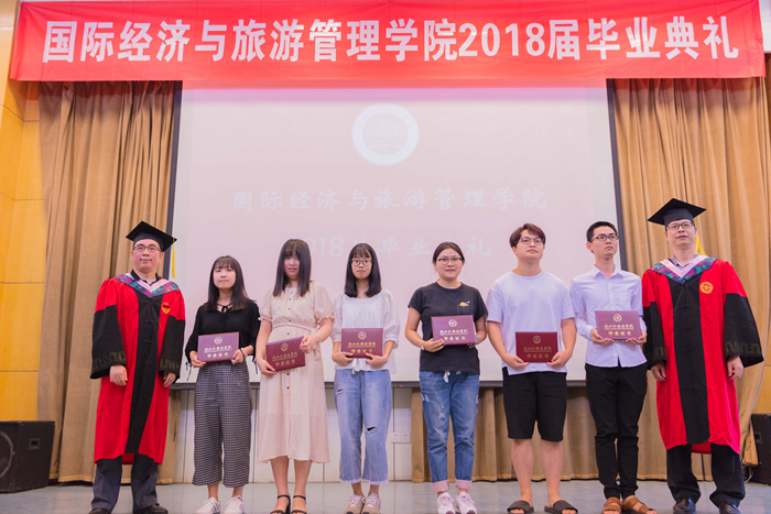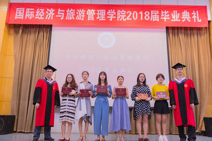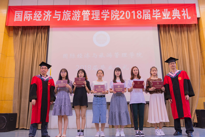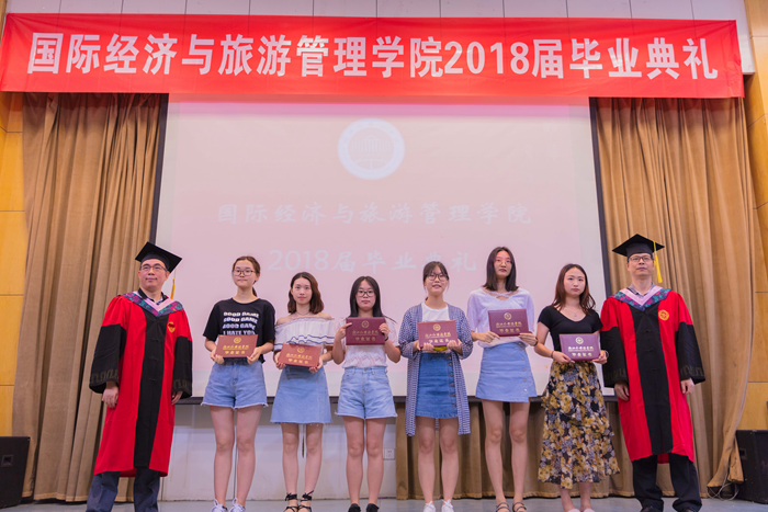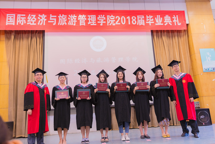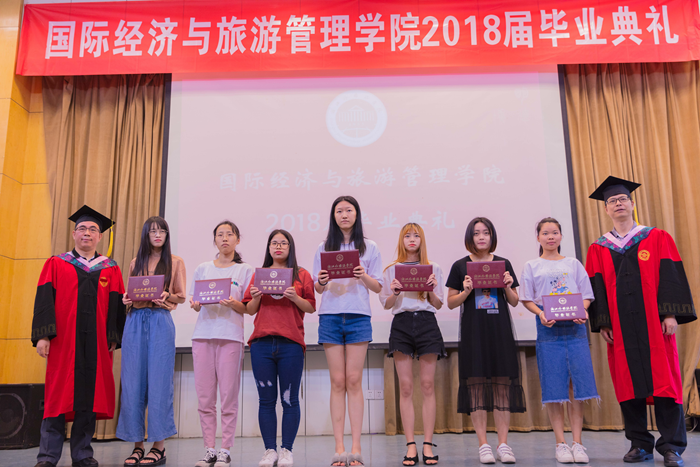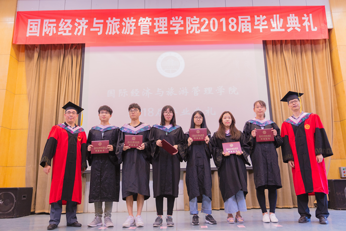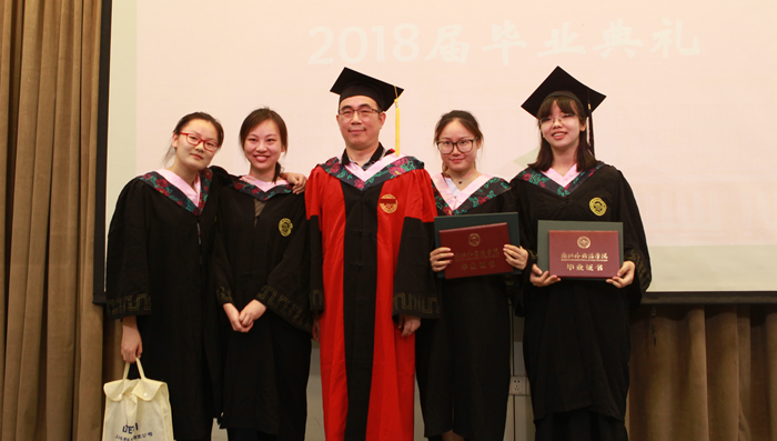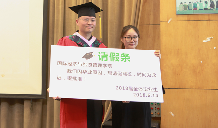 主持人声情款款的开场揭开了典礼的序幕。台下学子满座,学士服满堂,他们又是这样聚到了一起,却带有了离别的符号。紧接着,主持人宣读校优秀毕业生名单,公司经理赵银德教授,党总支书记俞海山教授为院各专业优秀毕业生颁奖。随后,各班班长上台领取毕业奖品。接过装饰精致的礼盒,各班代表不禁好奇这离别的最后一份赠礼究竟是什么呢?主持人展示了手中的钥匙扣,微笑着问:“大家可知道为什么发钥匙扣作为纪念奖品?”“因为公司是我们的家,永远为我们敞开回家的大门。”毕业生代表姚瑶的回答,让典礼染上了一份不知名的感动与温情。