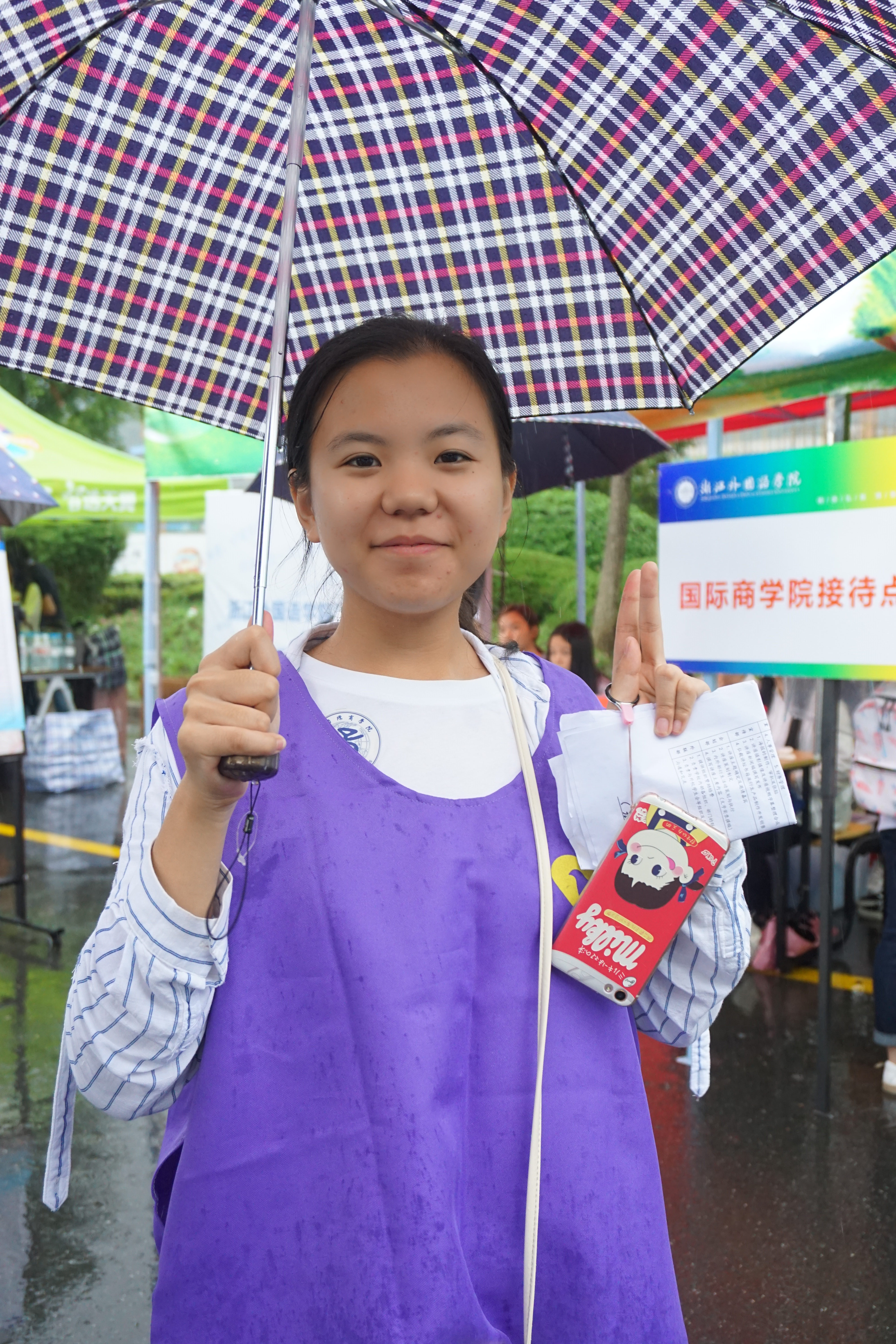 17会计3班的祝璐茜同学接受采访时如是说到,“第一印象觉得人好多,志愿者到处都有,学姐们很热情,感觉虽然下雨天,可是很温暖”