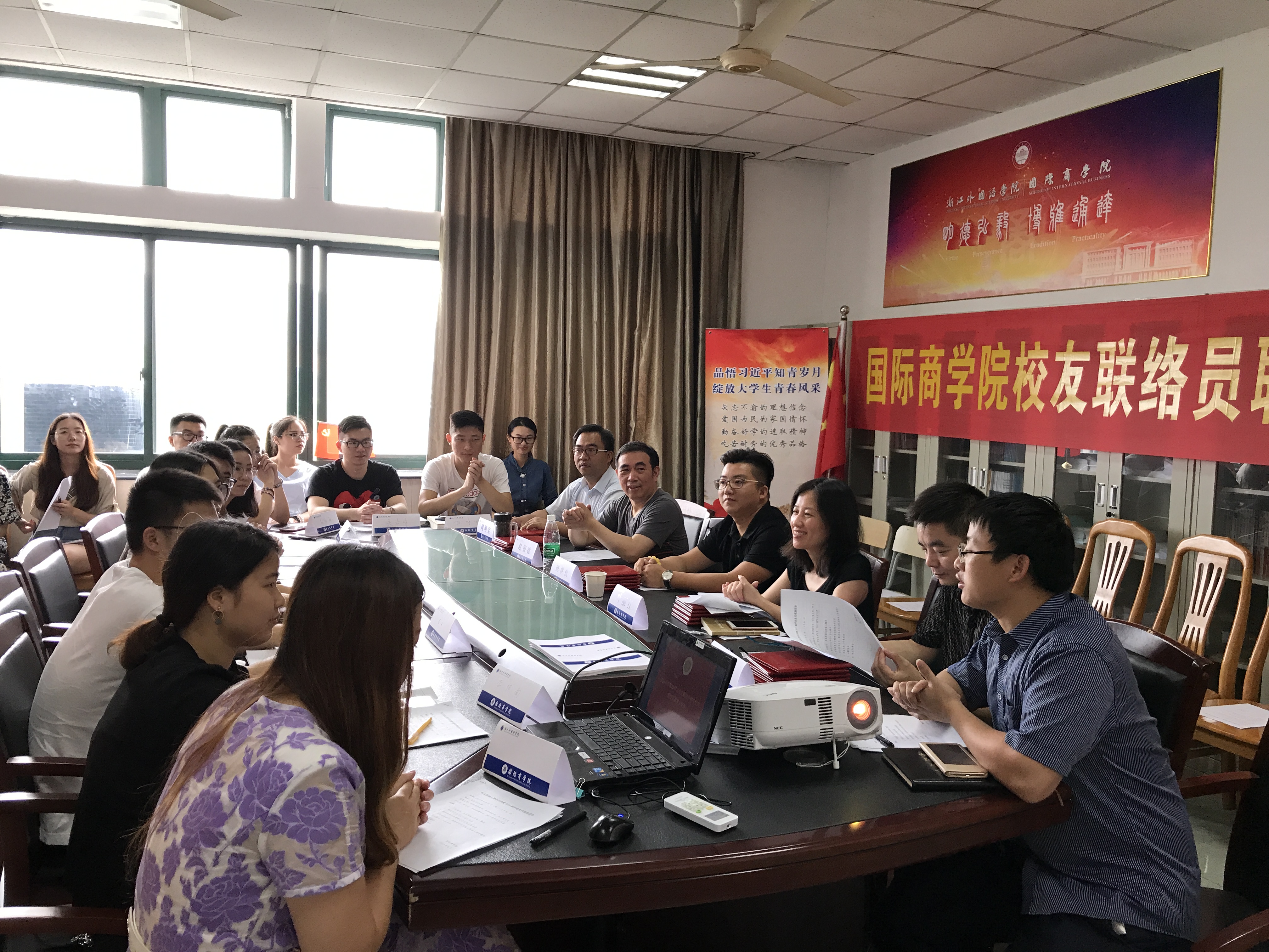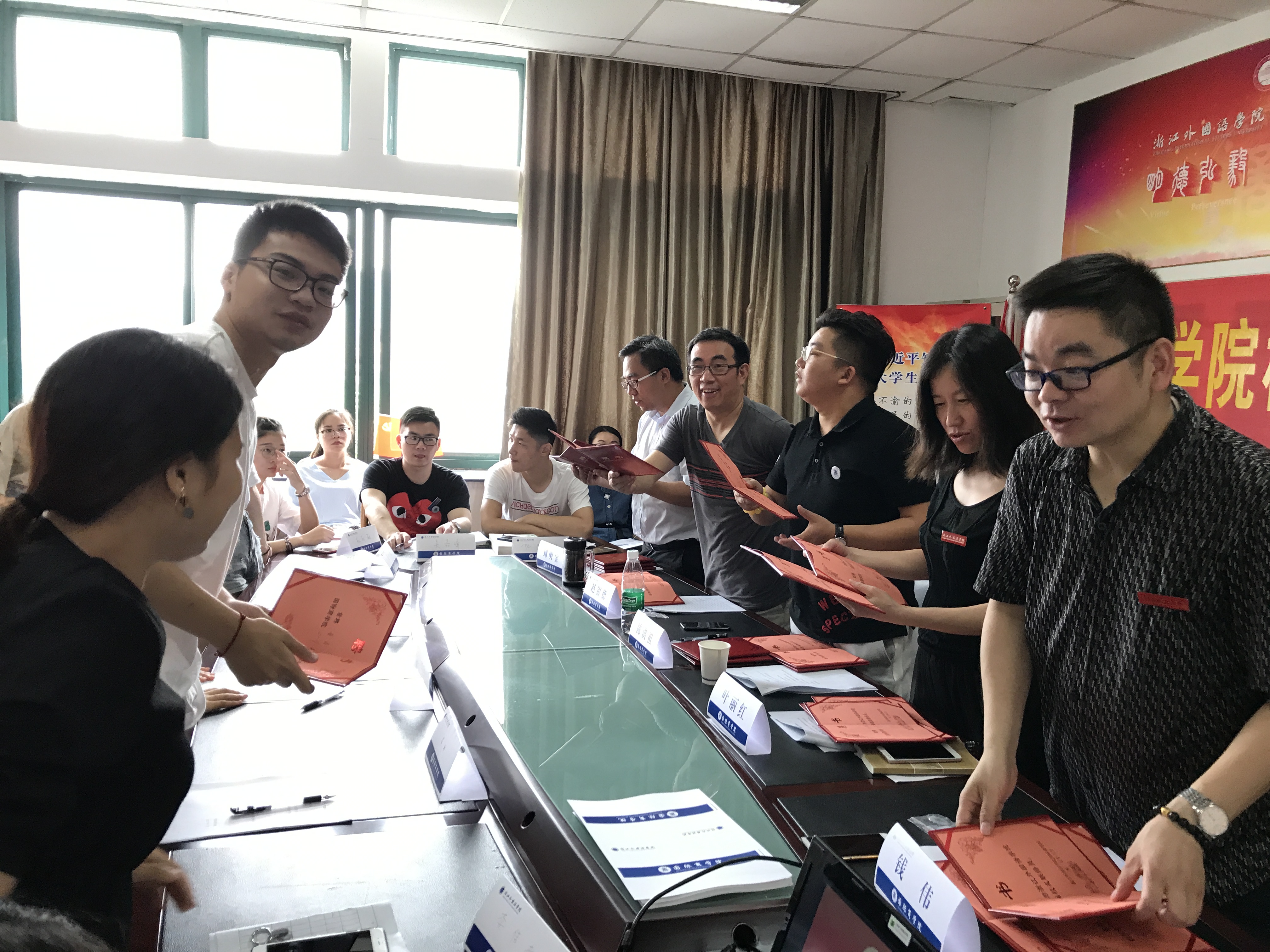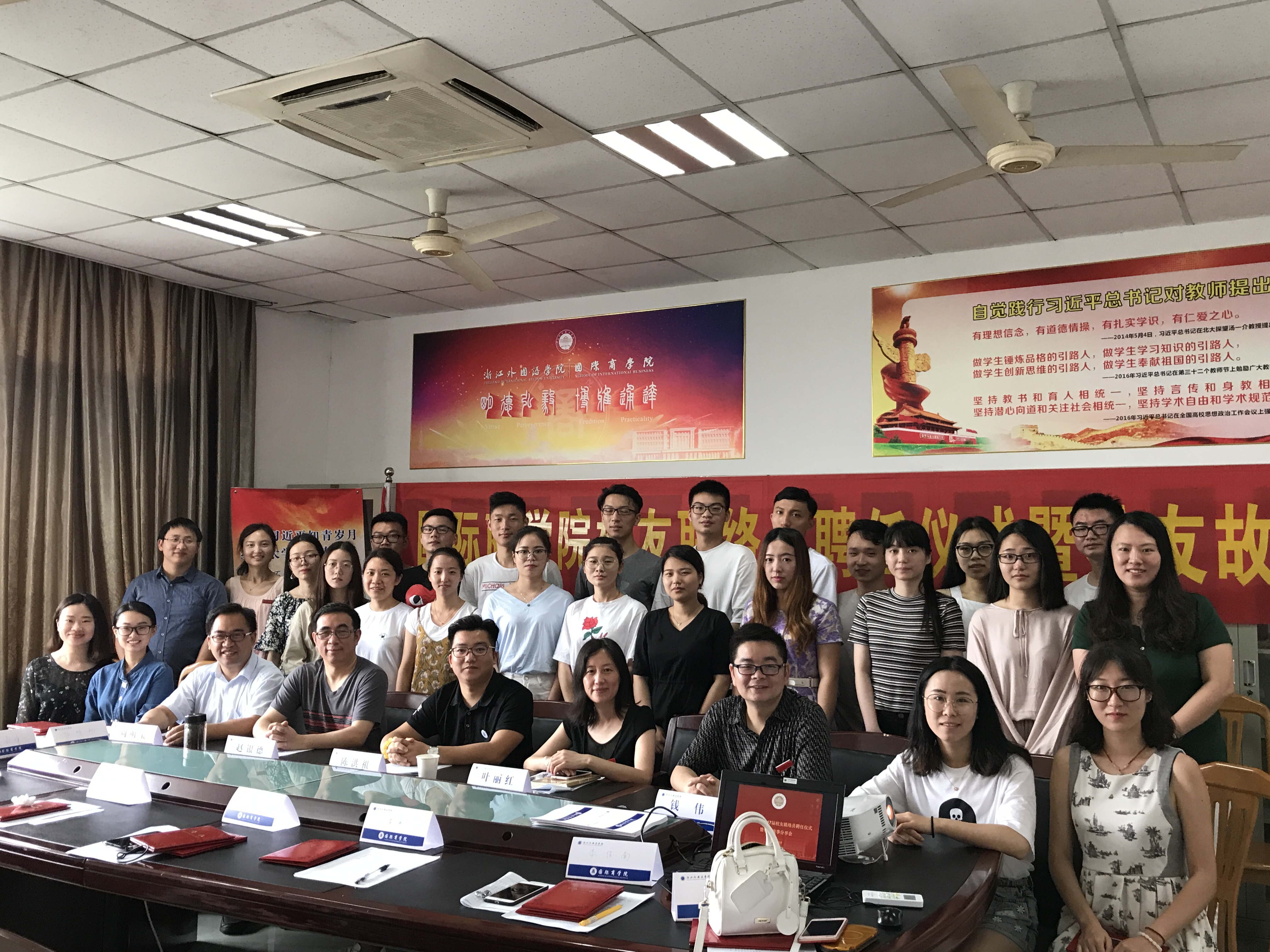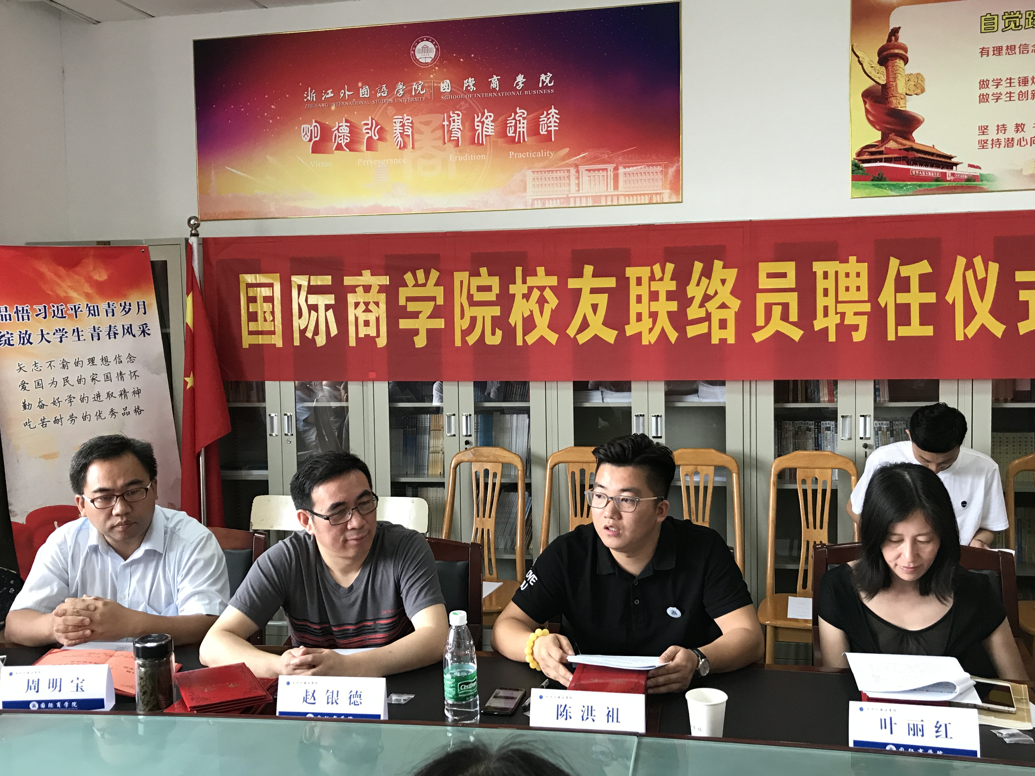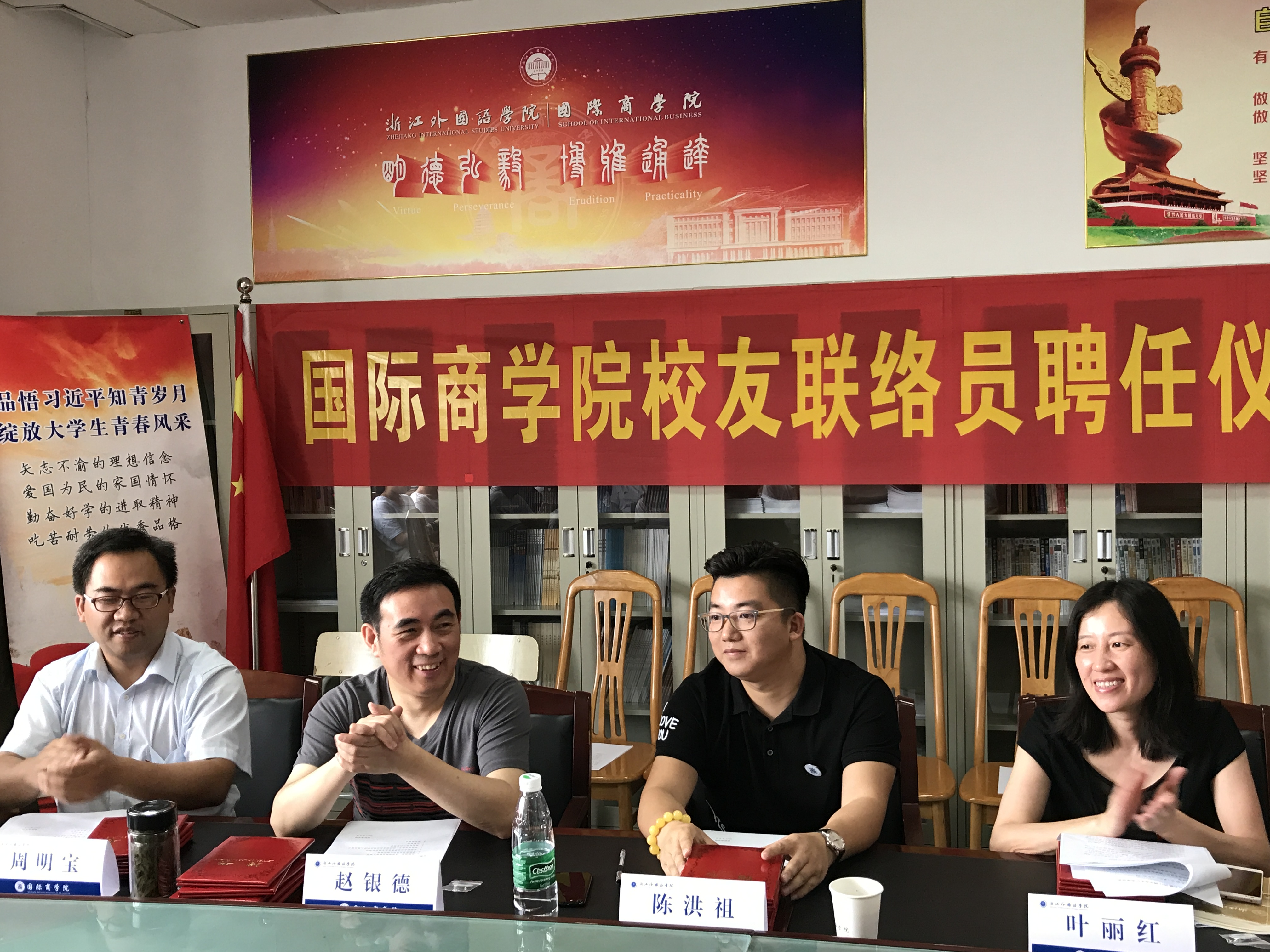 仲夏六月,清风拂面。6月20日上午,员工联络员聘任仪式暨员工故事分享会隆重召开。商公司员工会理事会会长陈洪祖、经理赵银德、公司党总支书记叶丽红、党总支副书记周明宝、院办公室主任钱伟、院学工办主任梁汲媛、毕业班辅导员和24位同学参加了会议。辅导员周长喜主持会议。