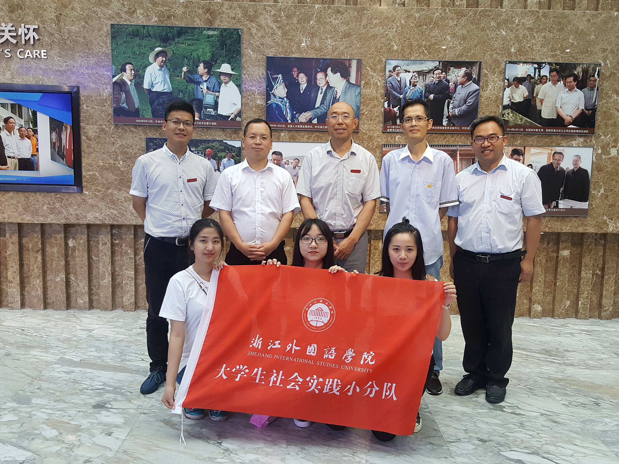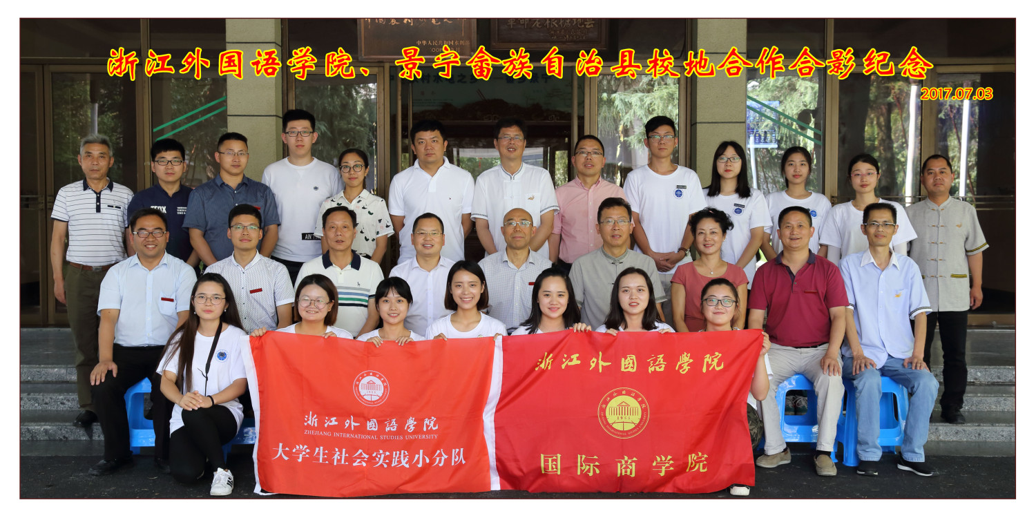 景宁县委相关部门负责任人,校教务处处长赵玻,校团委书记傅尧力,国际商公司党总支副书记周明宝,继续教育公司党总支副书记、副经理李春美,国际商公司教授张跃西以及追寻习近平浙江足迹景宁暑期社会时间队的全体师生出席仪式。