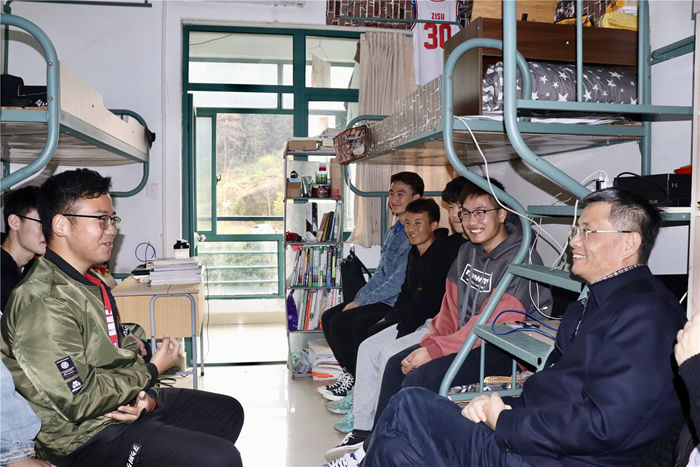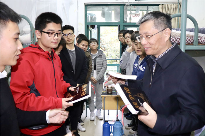 11月22日下午,公司党委书记宣勇教授走进公司雅正苑男生寝室,与同学们亲切交流,了解同学们学习生活情况。