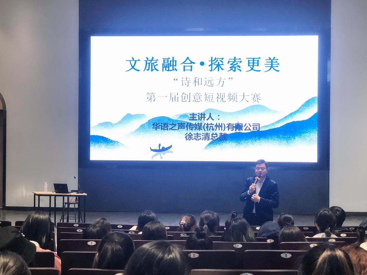 在讲座最后,公司张健康经理寄语同学取得优异竞赛成绩,公司贾新明副经理对本次培训进行了总结,希望同学们追求真善美,传递正能量,用短视频描绘“诗画浙江”,一起探寻“诗和远方”。