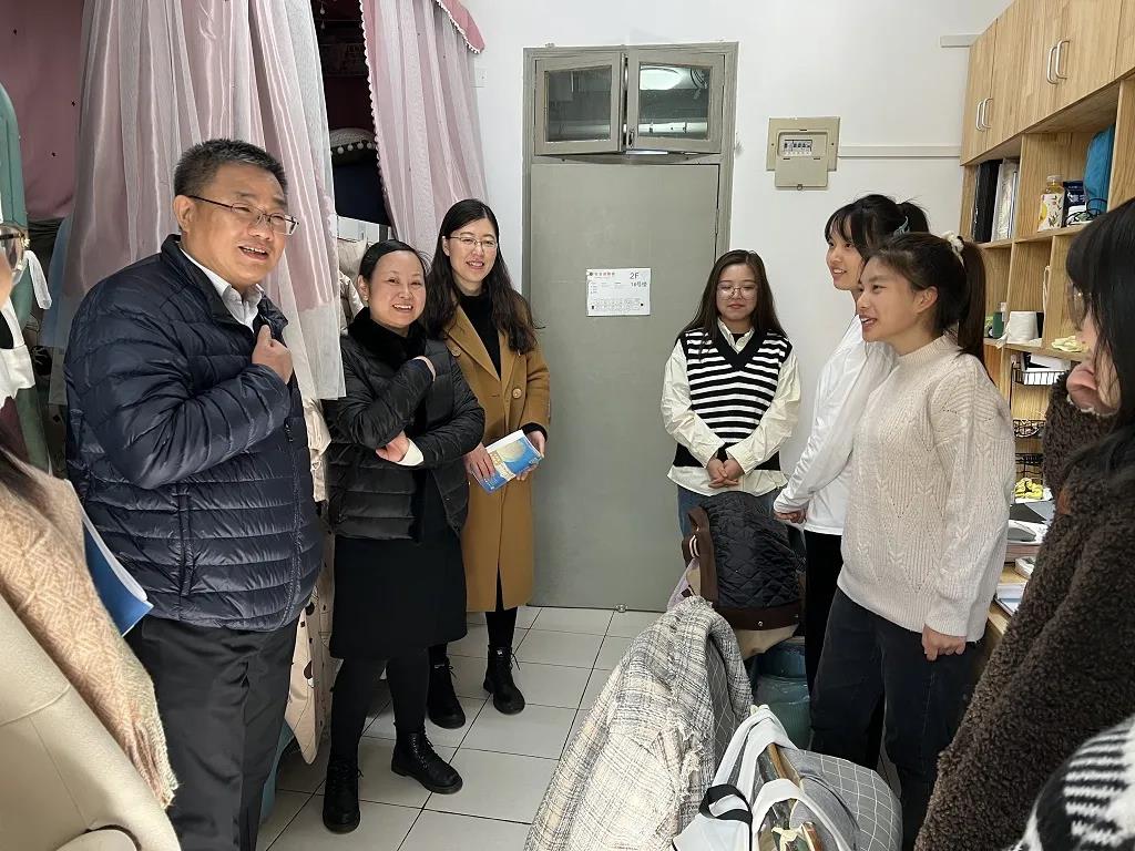 12月2日,副董事长赵庆荣走访21级新生寝室,了解员工的学习和生活情况。公司党总支书记范芸芸、副经理贾新明、党总支副书记陈超、学工办相关人员陪同走访。
