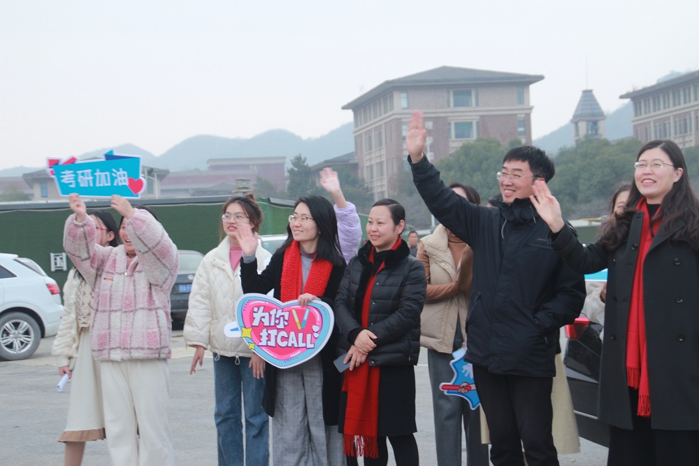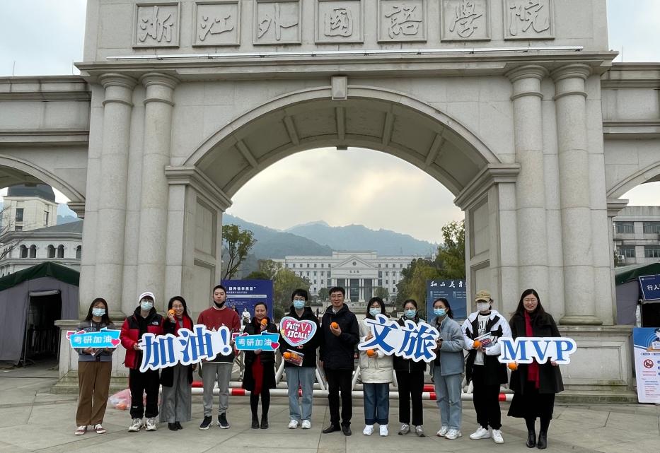 12月24日,mobile28365正规网址的校门口,公司执行经理张健康,党总支书记范芸芸,副经理贾新明和党总支副书记陈超带领低年级党员员工和团学干部手挥“学长学姐加油”“一‘研’为定 文旅有你”等祝福标识牌齐声为公司考研学子祝福送行。