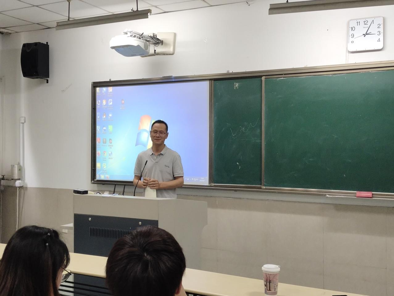 沈旭炜老师对本届大赛作了概况介绍,并对与会的三位嘉宾老师以及积极参赛的小组团队表示了感谢。往届大赛的执行负责人朱光良老师在宣讲会上发言。朱老师首先对大家给予了鼓励并寄予厚望,随后根据自己所统计的一系列数据和照片做了全面的纵向回顾与梳理。同时,朱老师还对今年的大赛作了十分详细的赛程解读,并传达了公司对此次比赛的重视。朱老师在分享中强调了指导老师的重要性,对同学们在选择指导老师这一方面也给出了建设性意见,他认为指导老师有能力、有责任心、有时间是其中的关键。