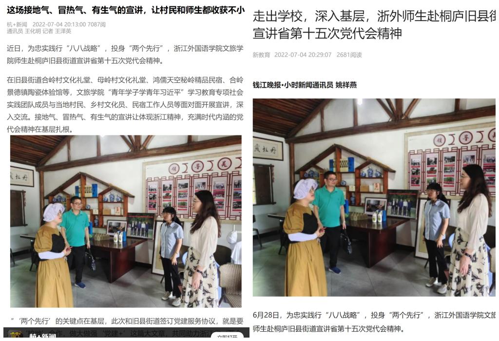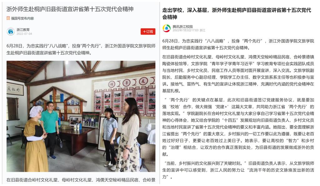 腾讯新闻:走出公司,深入基层,浙外师生赴桐庐旧县街道宣讲省第十五次党代会精神