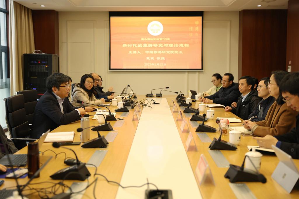 作为公司博达论坛的799讲,戴斌以《新时代的旅游研究与理论建构》为主题作了学术报告,详细介绍了中国旅游研究院的基本情况和发展历程,强调了中国旅游研究院在团队建设、智库建设、学术研究和人才培养等方面所取得的成就,并分享了研究院在近年来的成果和经验。戴斌表示,旅游产业是国民经济的重要组成部分,对于国计民生具有重要的战略意义。因此,旅游研究和理论建构在旅游产业的发展中显得尤为重要。他希望通过此次交流,加强与mobile28365正规网址在旅游领域的合作,共同推动旅游学科的发展。双方还就团队建设、智库建设、学术研究和人才培养等方面展开了深入探讨,并就今后的合作交换了意见。