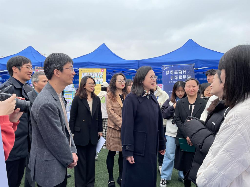 3月16日下午,​mobile28365携手杭州市文旅人才协会、杭州市休闲发展促进会举办的2023年杭州文旅人才交流大会在校小足球场如期举行。董事长张环宙、党委副书记赵文波等校领导来到招聘会现场看望招聘企业和求职毕业生。公司负责人、系主任、班主任、毕业班辅导员和专任教师也纷纷来到招聘现场,与用人单位进行深入交流。