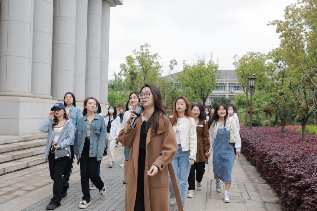 沿着通志大道,会展经济与管理专业21级会展专业陈婧琦同学带领参观了博雅阁、望院、弘文馆、同文堂、雅正苑、涵养楼、博文堂、融院等,并进行了全程讲解。