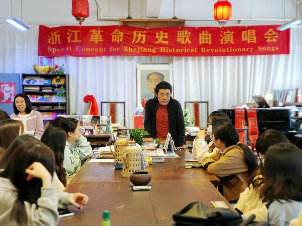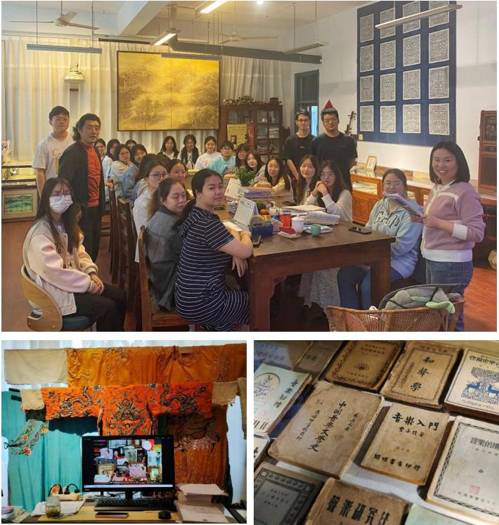 5月9日下午,​mobile28365数字文旅系20级员工来到公司“浙江本土音乐戏曲民俗非遗实验室”进行《文化遗产与旅游》课程的实践参观学习,实验室主任艺术公司李文军教授热情地向同学们介绍了实验室的各种文化遗产陈列品。