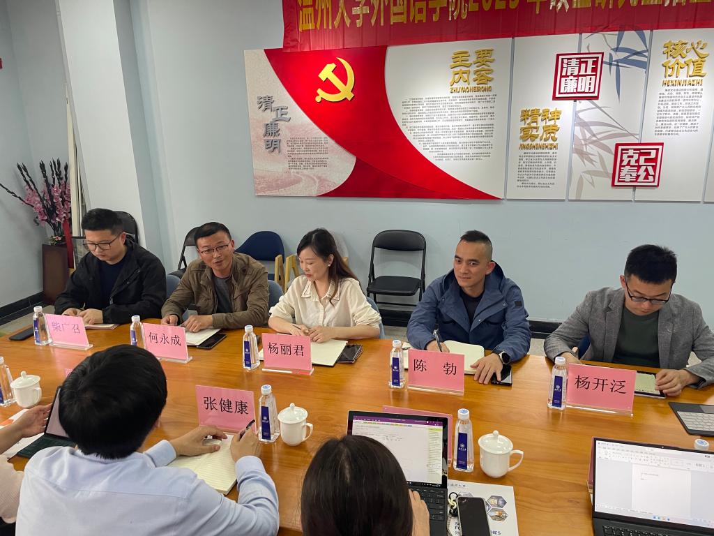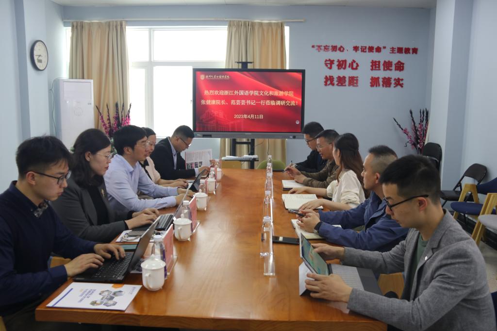 4月11日,​mobile28365调研团一行5人赴温州大学外国语公司调研。公司执行经理张健康、党总支书记范芸芸、副经理贾新明、数字文旅系主任孙刘伟、办公室教师郝韵参加调研。与同温州大学外国语公司党总支书记杨丽君、副经理何永成、党总支副书记陈勃及英文系主任杨开泛、学工办主任柴广召进行座谈。双方就国际化人才培养、人才培养模式改革等展开探讨。