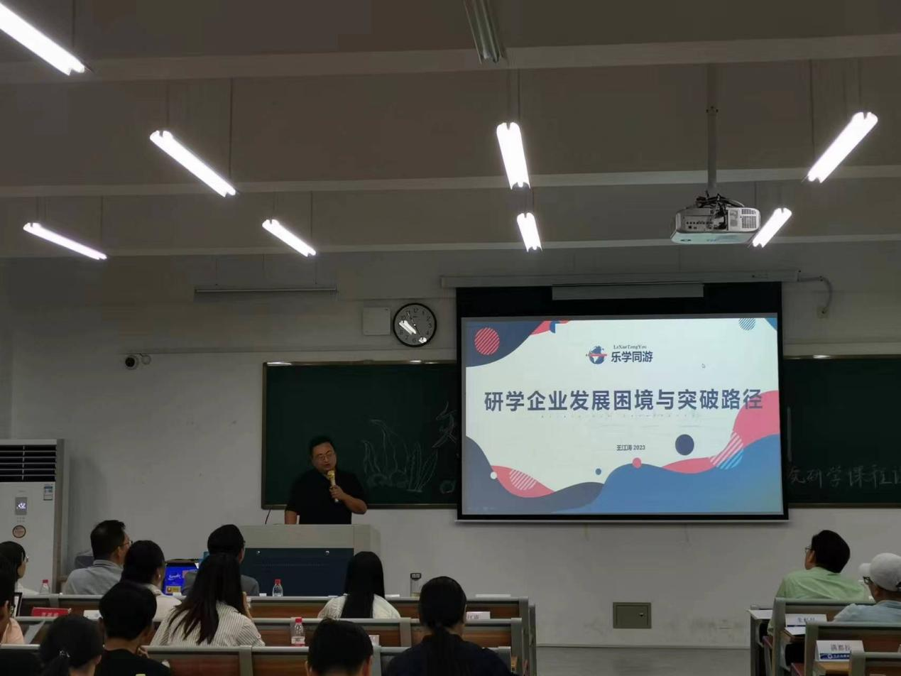 在公布作品荣获情况后,大赛邀请了企业代表从不同角度为与会同学和嘉宾进行了研学产品、市场、管理、经验等方面的主题分享。木塔与天空创始人虞佳乐从合格研学产品经理的培养视角进行分享,以木塔教育为例,明确指出产品经理应具备的能力和素质,包括其责任与工作流程。乐学同游创始人王江涛以自身企业发展阶段为例,分析当今研学企业发展困境,并提出协同地域资源与地域企业、校企联合培育实践型人才等路径走出困境。杭州国际青少年洞桥营地主任陈俊华针对研学实践活动设计提出建议,并鼓励员工积极投入,为其今后在研学行业的成长指明方向。海亮素质教育集团副理事长,海亮教育研究院首席专家满都拉通过分享日本、英国、芬兰这三个国家的研学历史与特色,引出“现象教学”的概念开展研学课程,为行业借鉴“他山之石”来设计、运营今后的研学产品的提供了新的启发与思考。