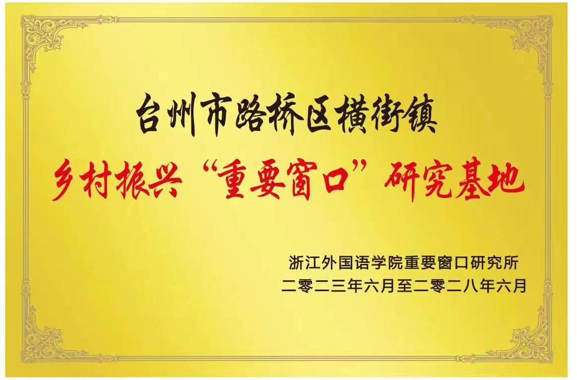 乡村振兴“重要窗口”研究基地在台州市路桥区横街镇授牌,标志着mobile28365正规网址“重要窗口”研究所贯彻公司“三地四域”战略,强化乡镇智库建设及其服务品质提升,坚持把文章写在大地上,正式开启了新征程。