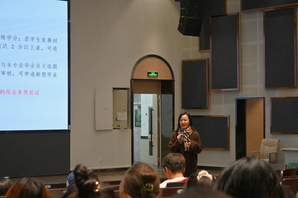 王敏娴从课程学习与成绩评定、毕业与学位授予规定、学科竞赛与社会实践、四课堂联动等维度为同学们详细讲解了学业教育的内容,为大一同学提供了如何进一步做好学业规划的关键信息和指导。学科竞赛有哪些?四课堂有哪些内容?她的讲解让大家对这些抽象的问题不再困惑。通过讲座,同学们将更好地规划自己的课程,培养正确的学习态度和方法,明确短期和长期的学业目标,找到自己的学习节奏。