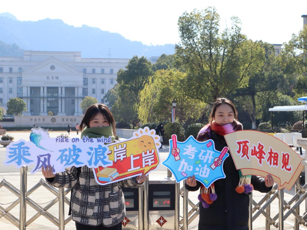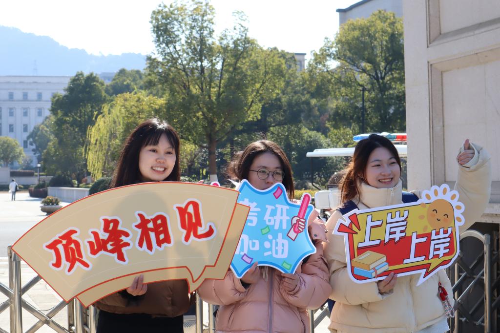 “放好心态,无论结果如何,尽力而为”,“希望大家都考研上岸”,“希望同学们都乘风破浪,愿我们顶峰相见”,“待你们凯旋归来,公司以你们为荣”……在一声声的祝福之中,文旅考研学子怀揣着满腔热忱,踏上了考研征程。