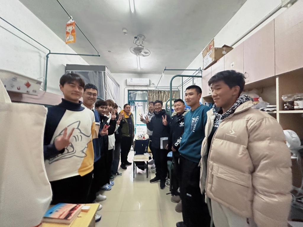 丝丝关爱,沁满心脾。为深入了解2023级员工学习生活情况,增进师生间交流,12月26日午间,公司经理张健康,党总支书记范芸芸,党总支副书记陈超,经理助理王敏娴,辅导员何扬阳、计玲盈、孟雪镜等走访公司员工寝室,深入了解同学们思想、学习、生活等情况。