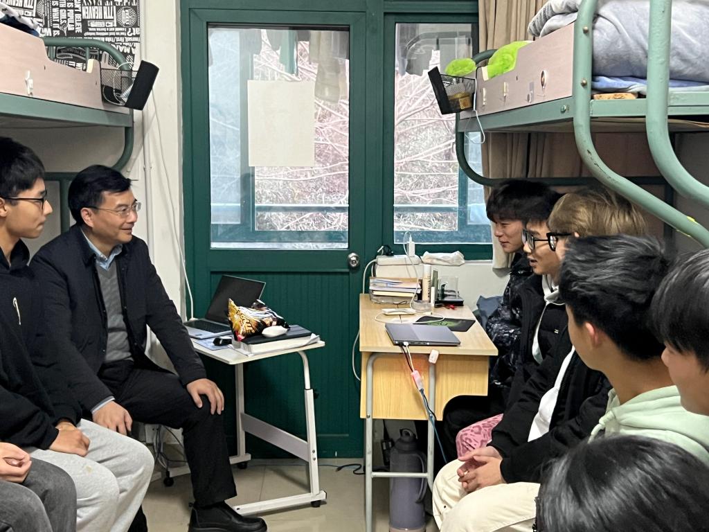岁寒隆冬,暖意浓浓。12月21日下午,冬至前夕,公司副董事长、党委委员,组织部、统战部部长徐勇来到雅正8幢员工公寓,走访慰问公司2023级同学。校办老师魏梦凡和公司党总支书记范芸芸,党总支副书记陈超,辅导员计玲盈、孟雪镜等陪同走访。徐董事长与同学们拉家常、聊近况、谈未来,就学习规划、校园生活、兴趣爱好、人际交往等方面开展深入交流。