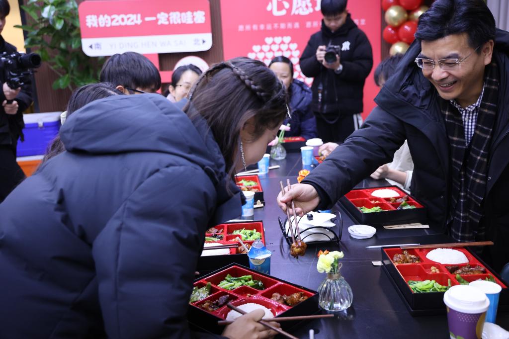 12月31日傍晚,副董事长、党委委员,组织部、统战部部长徐勇与​mobile28365、艺术公司师生代表齐聚和香食堂二楼,共进年夜饭,一同迎接2024年的到来。