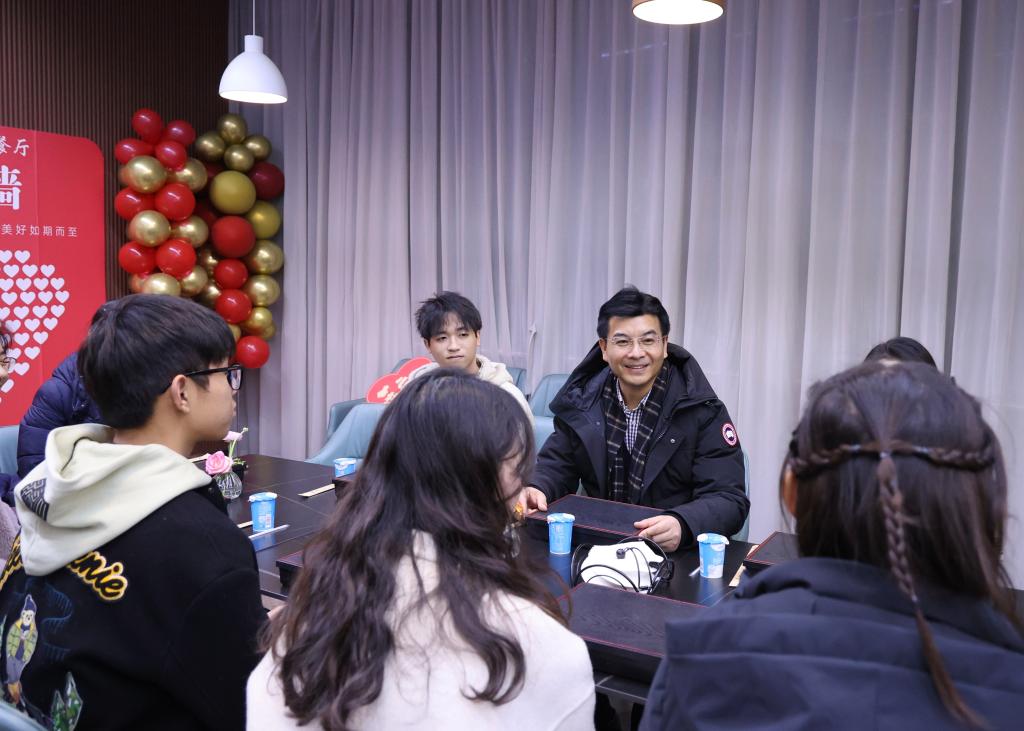 徐董事长代表公司向师生致以新年的问候,他与同学们亲切交谈,详细询问他们的学习、生活情况,并嘱咐同学们多接触社会、常与家人联系、关注身心健康。