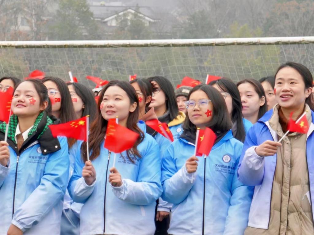 赵文波书记代表公司党委、行政向师生们致以节日的问候和新年的祝福,鼓励同学们树立爱国之情、砥砺强国之志、实践报国之行。文旅学子高唱国歌,挥舞着手中的国旗,满怀期盼地喊出:“2024,祝大家新年快乐!”