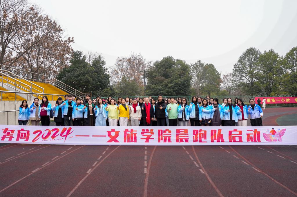 新故相推,日生不滞,冬至阳生,岁回律转。2024年1月1日晨,mobile28365正规网址新年升旗仪式暨​mobile28365晨跑队启动仪式在田径场举行。文旅师生怀揣着对2023年的告别、对2024年的期待,对祖国繁荣富强的期盼,齐聚于公司田径场,见证2024年第一次国旗升起,并开启新年第一跑。
